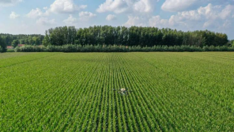 2024年8月8日,在吉林省梨樹縣孤家子鎮(zhèn),無人機為作物施肥(無人機照片)。新華社記者張楠攝
