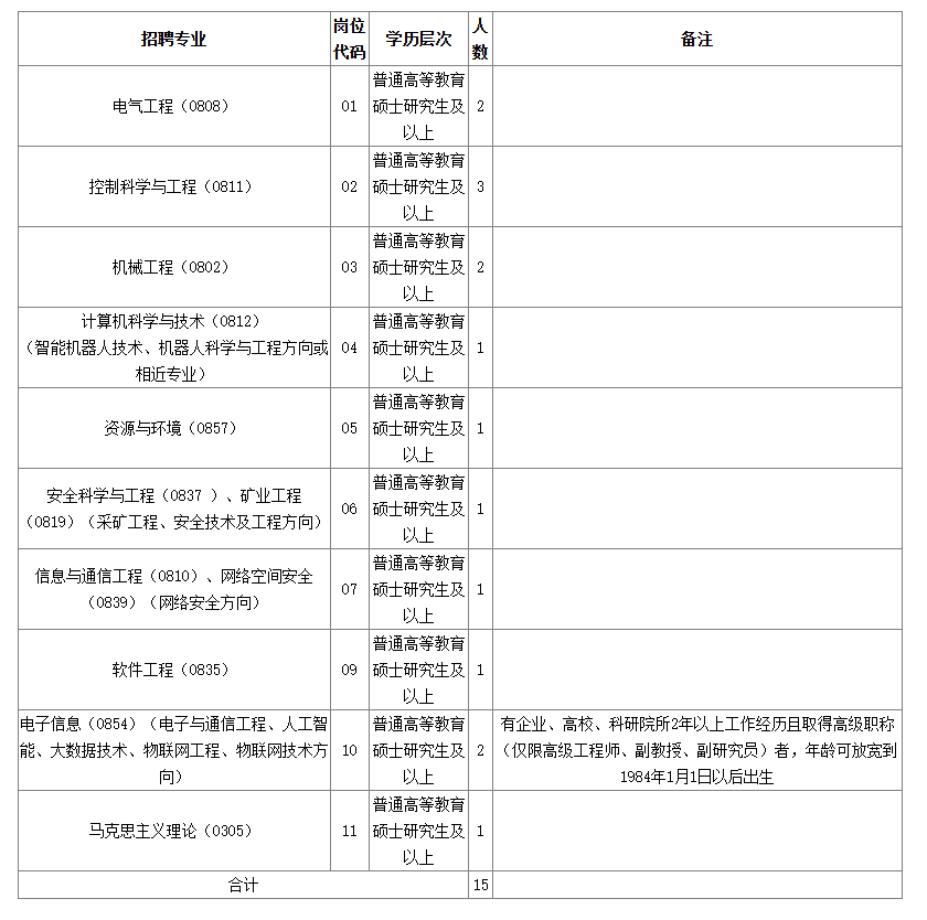 根據(jù)教師崗位空缺情況和學校事業(yè)發(fā)展需要,2024年擬公開招聘優(yōu)秀碩士畢業(yè)生15名。招聘專業(yè)及計劃見附件《河南工業(yè)和信息化職業(yè)學院2024年公開招聘碩士研究生一覽表》(以國務院學位委員會、教育部印發(fā)的《研究生教育學科專業(yè)目錄(2022年)》為準,學科括號內的專業(yè)方向僅為招聘崗位條件要求,不作為資格審核依據(jù))。