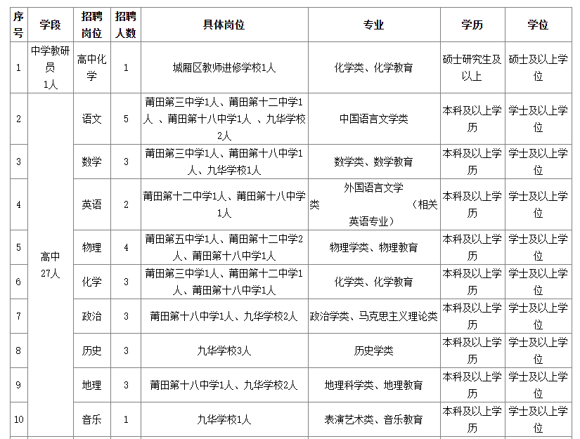 莆田市城廂區(qū)2025年公開考核招聘新任教師方案