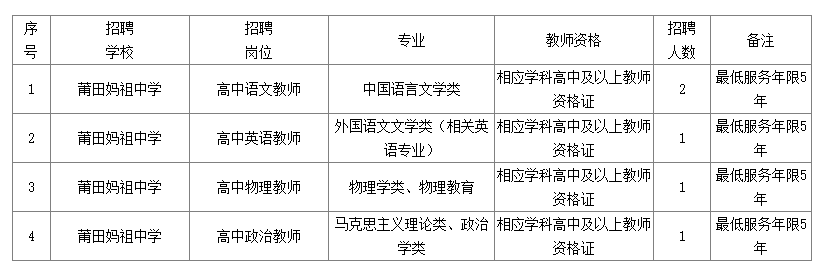 2025年莆田市湄洲島考核招聘新任教師公告