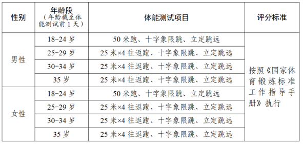 ?。ㄋ模┱垍⒓芋w能測試的考生自帶飲用水,并結(jié)合身體情況備好相關(guān)藥品,考試當(dāng)天請穿著寬松衣物或運(yùn)動衣及運(yùn)動鞋(鞋底不得帶釘)。