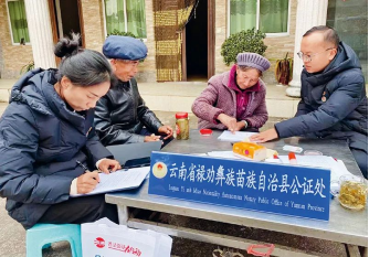 在深化公證體制改革中,司法部針對(duì)辦證“難繁慢”問(wèn)題,出臺(tái)一系列舉措,規(guī)范公證執(zhí)業(yè)秩序、優(yōu)化辦證點(diǎn)設(shè)置、拓展創(chuàng)新公證服務(wù)領(lǐng)域,努力實(shí)現(xiàn)公證服務(wù)質(zhì)量更好、服務(wù)更優(yōu)、群眾滿意度更高。圖為2025年1月16日,云南省祿勸彝族苗族自治縣公證處公證員為群眾上門(mén)辦理公證事項(xiàng)。司法部供圖