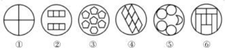 如上圖,圖形被分割成多個(gè)封閉區(qū)域,考慮面數(shù)量,面數(shù)量無法分成兩組,進(jìn)一步觀察發(fā)現(xiàn),每幅圖中明顯具有相同形狀的面,考慮相同面的數(shù)量,圖①⑤⑥中相同面的最大數(shù)量為4,圖②③④中相同面的數(shù)量為6。