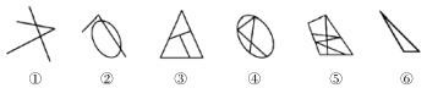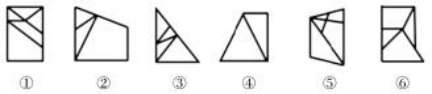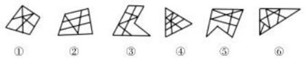 如上圖,圖形被分割成多個(gè)封閉區(qū)域,考慮面數(shù)量,面數(shù)量無法分成兩組,進(jìn)一步觀察發(fā)現(xiàn),每幅圖都有1個(gè)最大面,且圖①②⑥中最大面均為四邊形,圖③④⑤中最大面均為三角形。