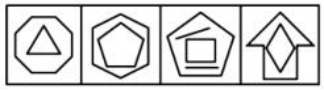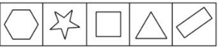 如上圖,組成元素重復(fù)出現(xiàn),考慮遍歷。觀察發(fā)現(xiàn),第一組圖形中圓形、三角形、五角星重復(fù)出現(xiàn)。第二組圖形中四邊形、三角形、圓形重復(fù)出現(xiàn)。