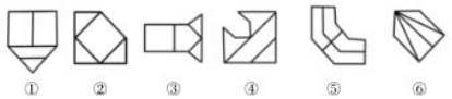 如上圖,每幅圖都是軸對稱圖形,畫出對稱軸發(fā)現(xiàn),圖①⑤⑥中的對稱軸經(jīng)過3個(gè)面,圖②③④中的對稱軸經(jīng)過1個(gè)面。