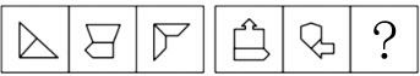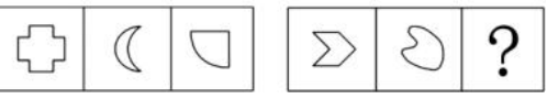 如上圖,元素組成不同,優(yōu)先考慮屬性規(guī)律。觀察發(fā)現(xiàn)第一組圖中分別是全直圖形、全曲圖形和曲+直的圖形。第二組前兩個(gè)圖形分別為全直圖形和全曲圖形。