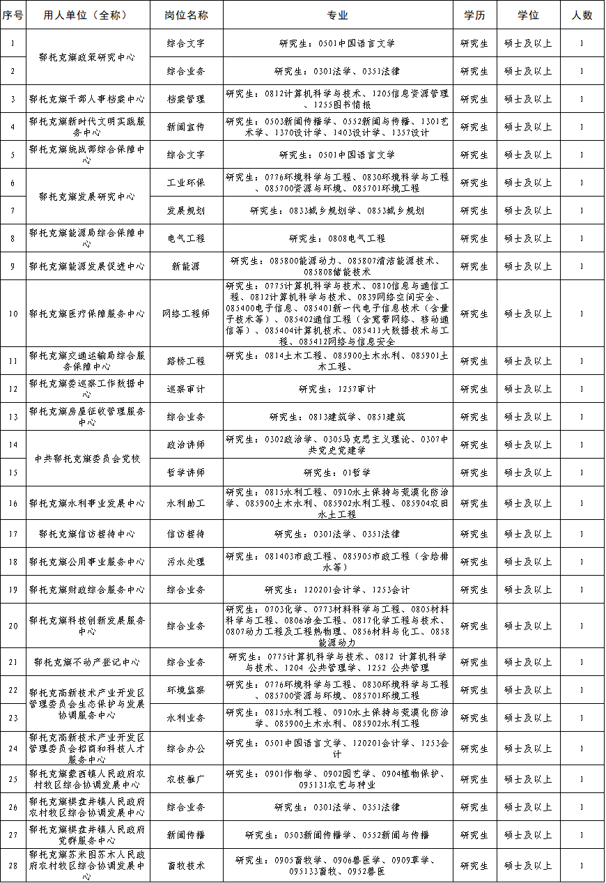 鄂托克旗2025年度事業(yè)單位高層次人才和緊缺專業(yè)人才引進(jìn)崗位表