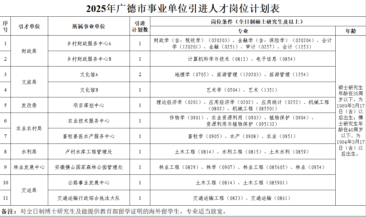 1.2025年廣德市事業(yè)單位引進(jìn)人才崗位計(jì)劃表;