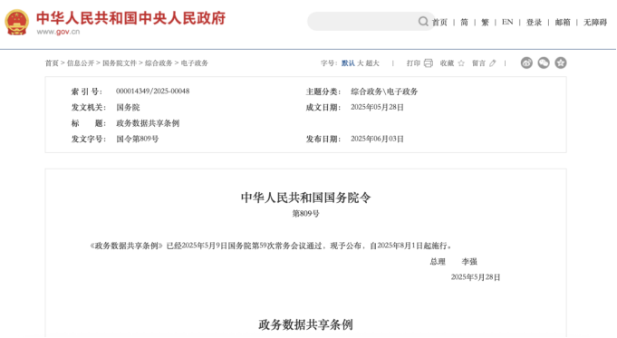 第六條 國家建立政務(wù)數(shù)據(jù)共享標準體系,推進政務(wù)數(shù)據(jù)共享工作標準化、規(guī)范化。