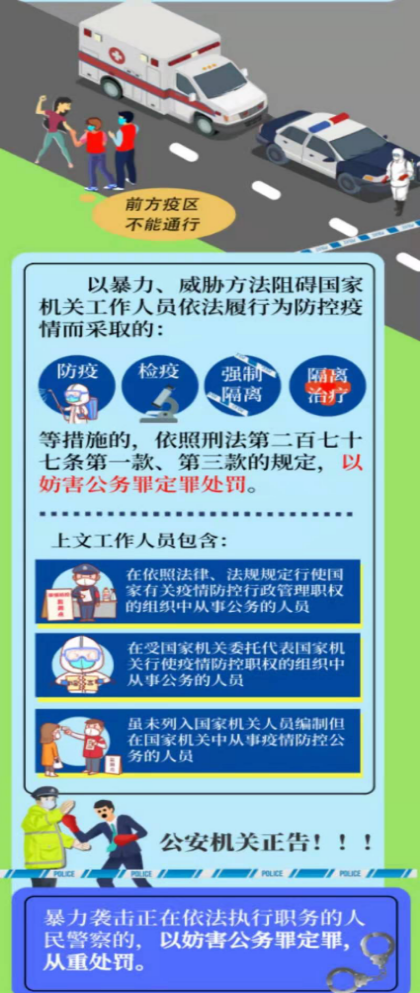 面對(duì)近期各地疫情的陸續(xù)出現(xiàn),公安機(jī)關(guān)將依法懲治妨害新型冠狀病毒感染肺炎疫情防控違法犯罪行為,保障人民群眾生命安全和身體健康,保障社會(huì)安定有序,保障疫情防控工作順利開展。