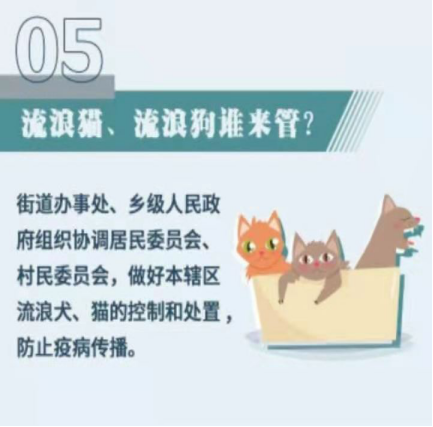 ②街道辦事處、鄉(xiāng)級人民政府組織協(xié)調(diào)居民委員會、村民委員會,做好本轄區(qū)流浪犬、貓的控制處置,防止疫病傳播。