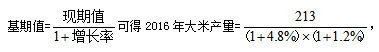 例1、已知2018年大米產(chǎn)量是213萬噸,同比增長4.8%,上年增長1.2%。