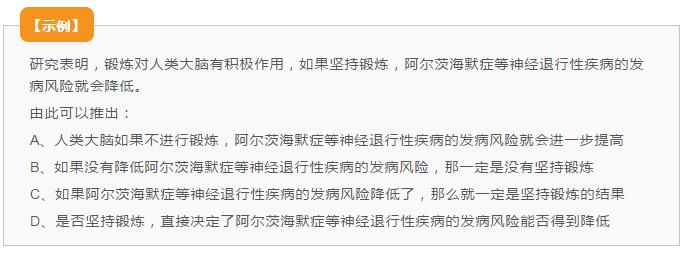 首先翻譯題干:①堅持鍛煉→阿爾茨海默癥等神經(jīng)退行性疾病的發(fā)病風(fēng)險就會降低。