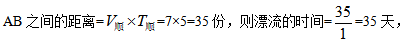 例2:一艘船從A地行駛到B地需要5天,而該船從B地行駛到A地則需要7天,假設(shè)船速、水流速度不變,并具備漂流條件,那么船從A地漂流到B地需要幾天?