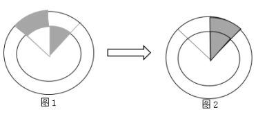 求陰影部分面積看似復雜,稍作旋轉就會有“山重水復疑無路,柳暗花明又一村”的既視感,如圖1,圖中陰影有兩部分,其中一個屬于不規(guī)則圖形,單獨求出每部分的面積之后再相加就有些復雜了。如果我們把圖中不規(guī)則的部分稍作旋轉,變成圖2,兩部分陰影合成一個,就是我們熟悉的扇形,再利用扇形的面積求解公式直接求解即可。旋轉一下,化繁為簡,是不是很神奇了?