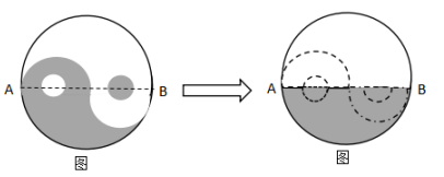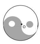 【例題2】如圖,太極八卦圖外部是以O點為圓心,6cm為半徑的圓,其內部白色小圓與黑色小圓的圓心與大圓圓心在同一條直線上,且小圓直徑為2cm,求圖中陰影部分的面積?