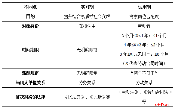 公共基礎(chǔ)知識法律知識:實(shí)習(xí)期VS試用期