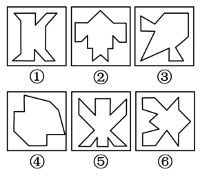 例如:把下面的六個(gè)圖形分為兩類,使每一類圖形都有各自的共同特征或規(guī)律,分類正確的一項(xiàng)是: