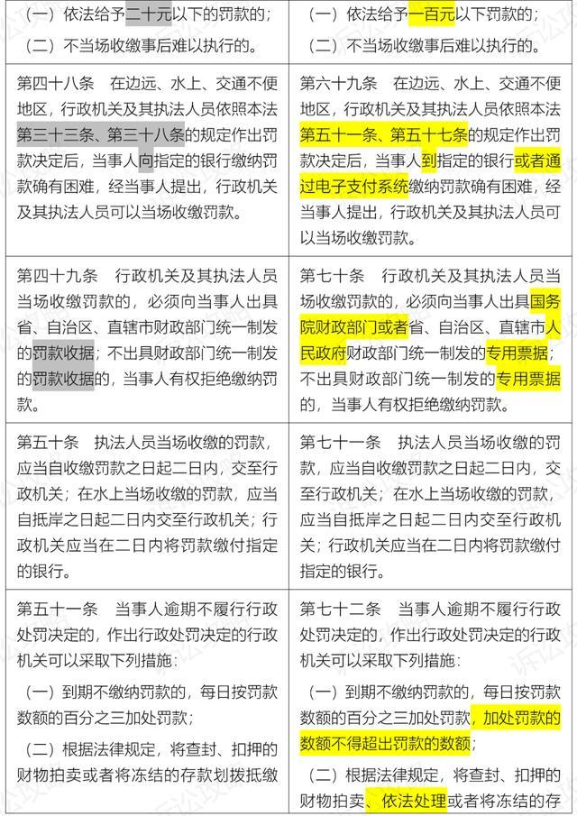 4.當(dāng)場處罰數(shù)額標(biāo)準(zhǔn)有變化