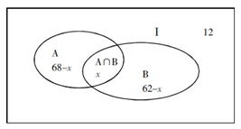 直接計算可以知道,68-x+x+62-x+12=85,因此x=57。故正確答案為A。