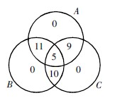 圖中,黑色部分是準備參加兩種考試的學生,灰色部分是準備參加三種考試的學生。計算總人數(shù)時,黑色部分重復計算了一次,灰色部分重復計算了兩次,所以接受調(diào)查的學生共有63+89+47-24×2-46+15=120人。故正確答案為A。