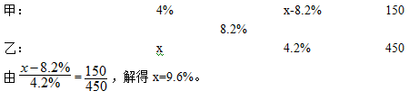 例題6:甲容器中有濃度為4%的鹽水150克,乙容器中有某種濃度的鹽水若干,從乙中取出450克鹽水,放入甲中混合成濃度為8.2%的鹽水,那么乙容器中的濃度是多少?( )