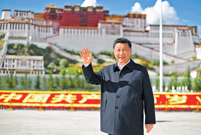 22日下午,習(xí)近平在布達(dá)拉宮廣場(chǎng),同游客和