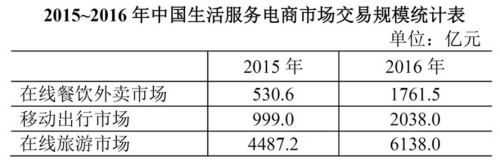 【例2】以下哪項最能準確描述2016年生活服務電商市場中,三個不同細分市場交易規(guī)模同比增量的比例關系?