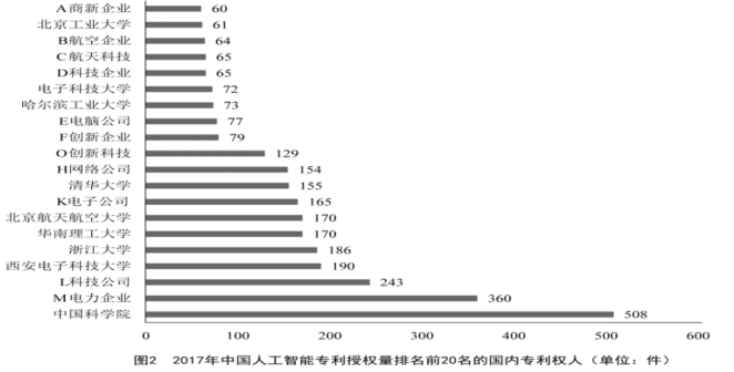 D.2017年排名前20名的國內(nèi)專利權(quán)人,其人工智能專利授權(quán)量占當年人工智能專利授權(quán)總量的比例超過了40%