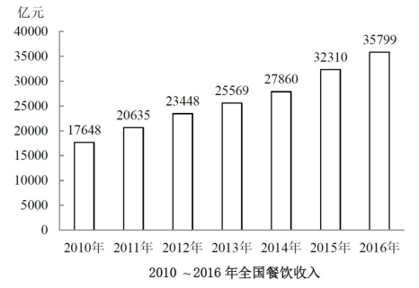 C、2016年全國餐飲收入比2010年翻了一番以上