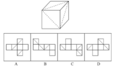 33、下列選項,不可能是所給立方體展開圖的是( )。