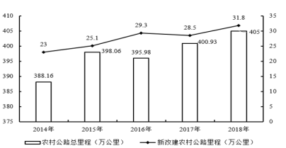 81、2014—2018年,全國新改建農村公路里程共計( )萬公里