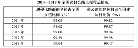 C. 2014—2018年,通硬化路面的鄉(xiāng)鎮(zhèn)占全國鄉(xiāng)鎮(zhèn)的比例逐年提高