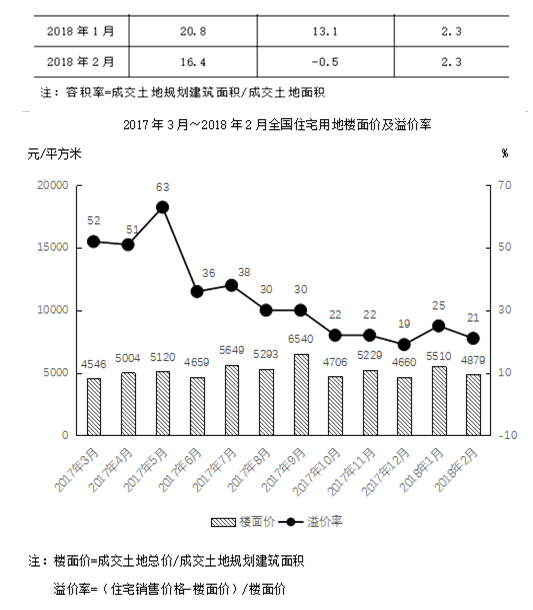 D.2017年下半年,全國住宅用地樓面價超過5000元/平方米的月份有且僅有3個