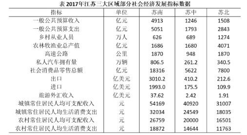 B.2017年蘇北和蘇中地區(qū)進(jìn)口額之和不及蘇南的八分之一
