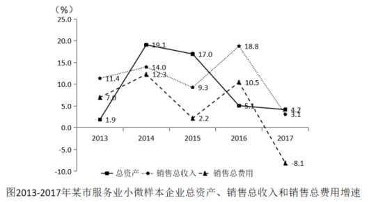 D.2013-2017年該市小微樣本企業(yè)銷售總收入和總費(fèi)用增速相差最大的年份是2017年