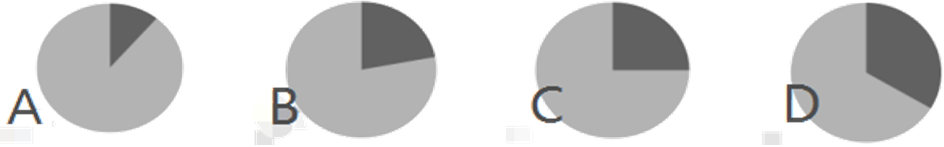 114.以下餅圖中,最能準確反映2015年財產(chǎn)險(黑色)和人身險(白色)在互聯(lián)網(wǎng)保險收入中占比狀況的是( )