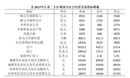 2018年江蘇第一、二、三產(chǎn)業(yè)增加值分別為4142億元、41248億元和47205億元;城鎮(zhèn)常住居民人均可支配收入47200元,增長8.2%,農(nóng)村常住居民人均可支配收入20845元,增長8.8%;一般公共預(yù)算收入8630億元,一般公共預(yù)算支出11658億元
