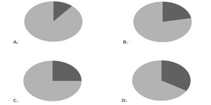 89.以下餅圖中,最能準確反映2015年財產(chǎn)險(黑色)和人身險(白色)在互聯(lián)網(wǎng)保險收入中占比狀況的是( )