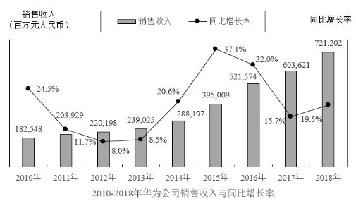 108.2010年-2018年華為公司銷售收入同比增長低于的年份有( )個。