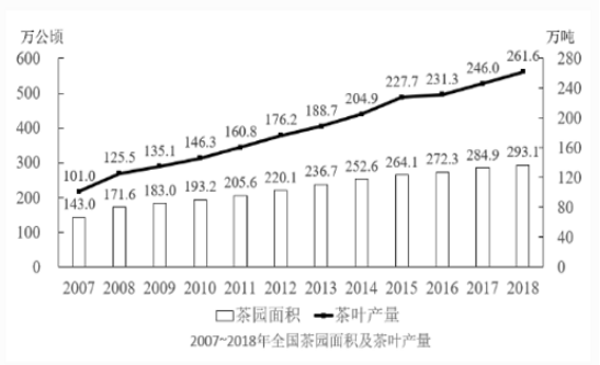 A.2018年全國茶葉產(chǎn)量比9年前翻了一番