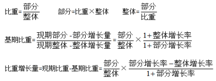 當比較現(xiàn)期比重和基期比重時,只需比較部分增長率和整體增長率之間的大小關(guān)系。