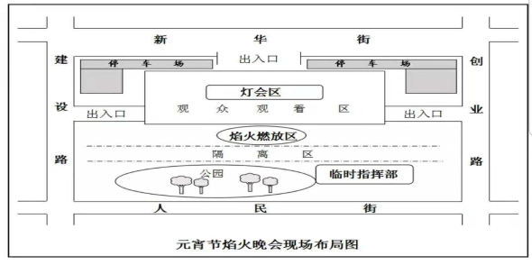 甲市為營造喜慶、祥和的節(jié)日氛圍,決定于元宵節(jié)當(dāng)晚(18時-22時)在當(dāng)?shù)厝嗣駨V場(能同時容納5萬人) 舉行露天大型燈火晚會及焰火表演(21時30分~22時),要求有關(guān)部門做好預(yù)案和相關(guān)準備工作。該市公安機關(guān)根據(jù)安保方案組織警力及時上崗執(zhí)勤,17時開始對廣場周邊新華街、創(chuàng)業(yè)路、人民街、建設(shè)路區(qū)域?qū)嵤┙煌ü苤疲股鐣囕v進入活動區(qū)。17時30分許,觀眾陸續(xù)從三個出入口進入廣場,19時許,廣場內(nèi)觀眾數(shù)量已超過4萬人,同時,觀眾仍在不斷涌向廣場,形成前堵后涌態(tài)勢。