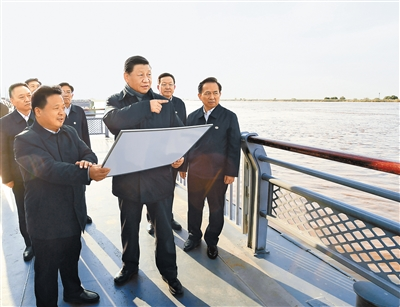 10月22日下午,中共中央總書記、國家主席、中央軍委主席習(xí)近平在山東省濟南市主持召開深入推動黃河流域生態(tài)保護和高質(zhì)量發(fā)展座談會并發(fā)表重要講話。這是座談會前,習(xí)近平20日下午在東營市黃河入??诳疾?。