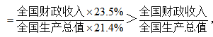 【答案】B。【解析】本題考察的考點(diǎn)為比重,公式為:部分/整體,題目所涉及的統(tǒng)計(jì)指標(biāo)有地方財(cái)政收入和地區(qū)生產(chǎn)總值,最終比較三個(gè)經(jīng)濟(jì)圈地方財(cái)政收入占地區(qū)生產(chǎn)總值的比重與全國平均水平的大小。但是“全國平均水平”在材料中不能直接找到,也未給出全國財(cái)政收入和全國生產(chǎn)總值,故無法直接比較。但是材料給出了三個(gè)經(jīng)濟(jì)圈各經(jīng)濟(jì)指標(biāo)與全國經(jīng)濟(jì)指標(biāo)的關(guān)系:以長(zhǎng)三角為例,地方財(cái)政收入占全國的比重為23.5%,地區(qū)生產(chǎn)總值占全國的比重為21.4%??梢允褂瞄L(zhǎng)三角地區(qū)地方財(cái)政收入占地區(qū)生產(chǎn)總值的比重與全國平均水平建立聯(lián)系:長(zhǎng)三角地區(qū)地方財(cái)政收入占地區(qū)生產(chǎn)總值的比重