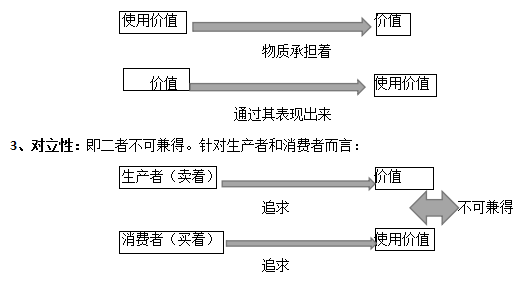 2、統(tǒng)一性:針對商品而言,任何一個商品必須同時具備使用價值和價值兩個因素