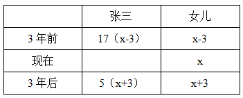 3年前張三的年齡是他女兒的17倍,3年后張三的年齡是他女兒的 5倍,那么張三的女兒現(xiàn)在:( )