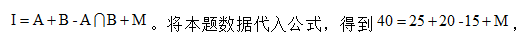 表示兩科都及格的人數(shù),補(bǔ)集M表示兩科都不及格的人數(shù),這樣,若想用各個(gè)部分拼湊出全集I,根據(jù)每一個(gè)區(qū)域不重復(fù)、不遺漏的原則,應(yīng)用A+B,減去重復(fù)的部分