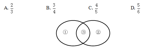 【答案】B【解析】利用文氏圖梳理題干信息,則區(qū)域表示只去了景點(diǎn)A的游客人數(shù),區(qū)域表示沒去A的游客人數(shù),區(qū)域表示兩個(gè)景點(diǎn)都去了的游客人數(shù)。由題意,可設(shè)區(qū)域①、②的人數(shù)為x人,則有2X=3X,即區(qū)域的人數(shù)為(2/3)X人,則所求為X+X/X+X+(2/3)X=3/4,選B。